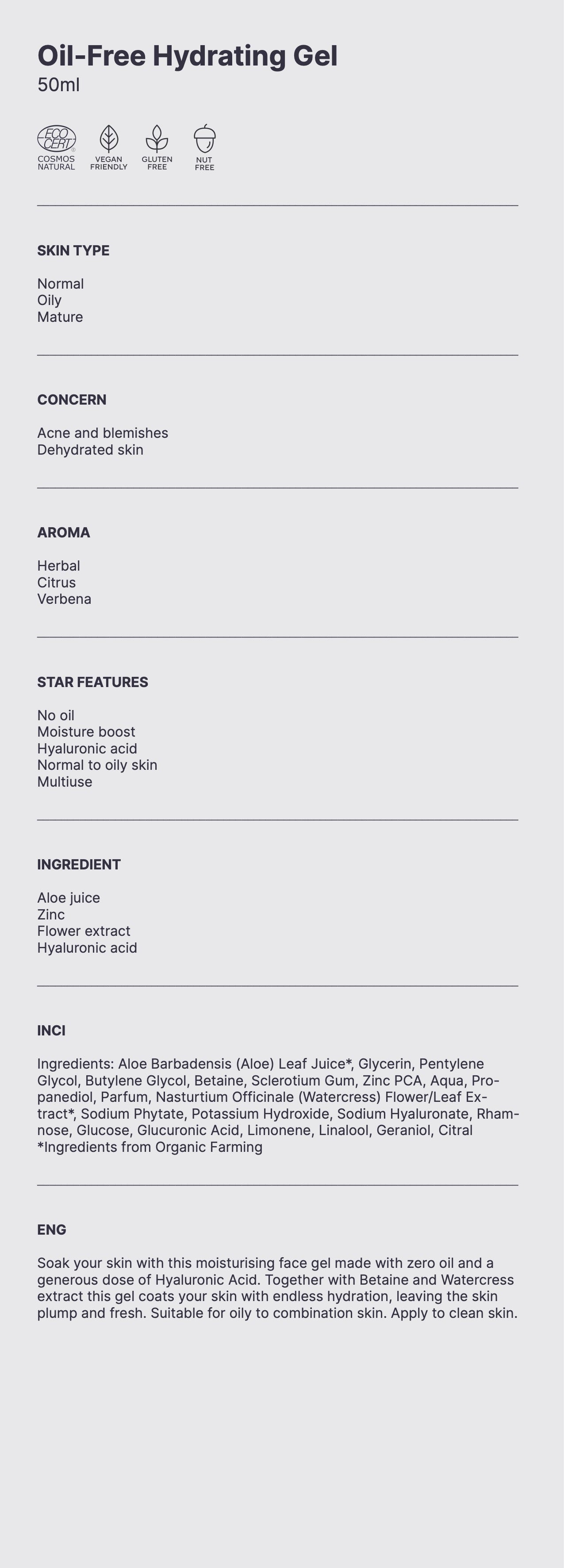 Aloe, Zink und Hyaluronsäure spenden intensive Feuchtigkeit, ohne Öl. Ideal für Mischhaut, unreine Haut und perfekt nach Behandlungen wie chemischen Peelings oder Microneedling beruhigt und schützt die Haut in den ersten Tagen der Regeneration.